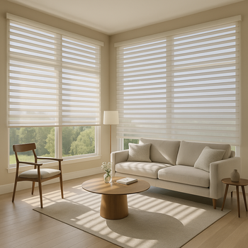 Persianas de cebra blancas inalámbricas Persilux para Windows 22 \ "W X 64 \" H Control de luz de doble capa Día Noche Filtrado Tonos