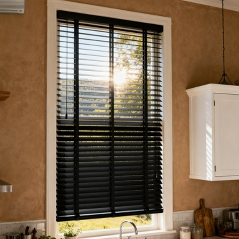 Persianas venecianas de aluminio de 25mm, listones recubiertos resistentes a la humedad con Control de luz con operación Manual eléctrica para uso diario de sombreado