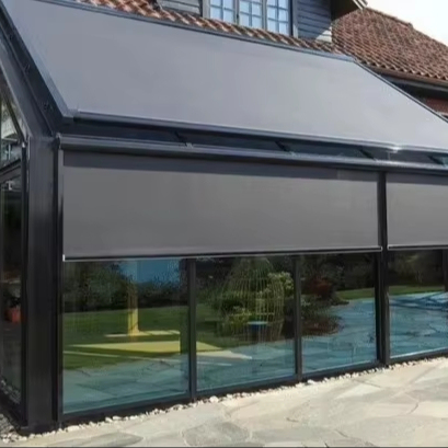 Persianas enrollables para exteriores impermeables y resistentes a los rayos UV con pista guiada eléctrica con cremallera para balcón, pérgola o ventana de oficina